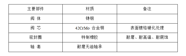 四、注意事項 橡膠密封圈充氣壓力應保證在0.30~0.60MPa且高于輸送壓力0.15MPa,氣缸工作壓力0.45~0.65MPa,使用潔凈、干燥、無油壓縮空氣。 五、主要零部件材料